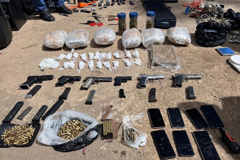Además, fueron decomisados diez cargadores, aproximadamente 250 municiones de diferentes calibres, siete teléfonos celulares, 22 bolsas con posible crack, siete paquetes y tres frascos con lo que se presume era marihuana.