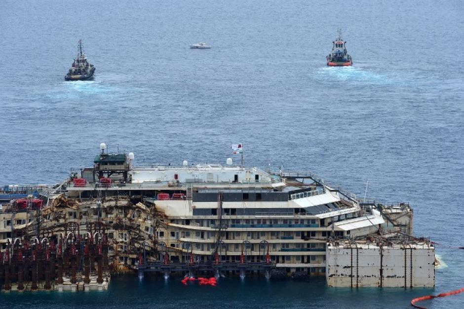 El crucero "Costa Concordia" volvió a flotar este lunes por primera vez desde su naufragio el 13 de enero de 2012 frente a la isla de Giglio, en la costa italiana. La embarcación será desmantelada si concluye con éxito la etapa de recuperación.