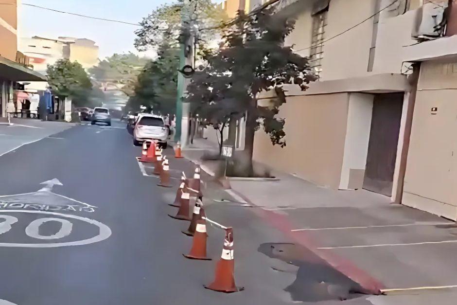 "Dando a seguimiento a las denuncias de vecinos, logramos levantar ahí algunos conos que estaban con cadena y algunos botes que siempre colocan. Nadie puede obstaculizar y menos cobrar parqueo en la vía pública", indicó un PMT.
