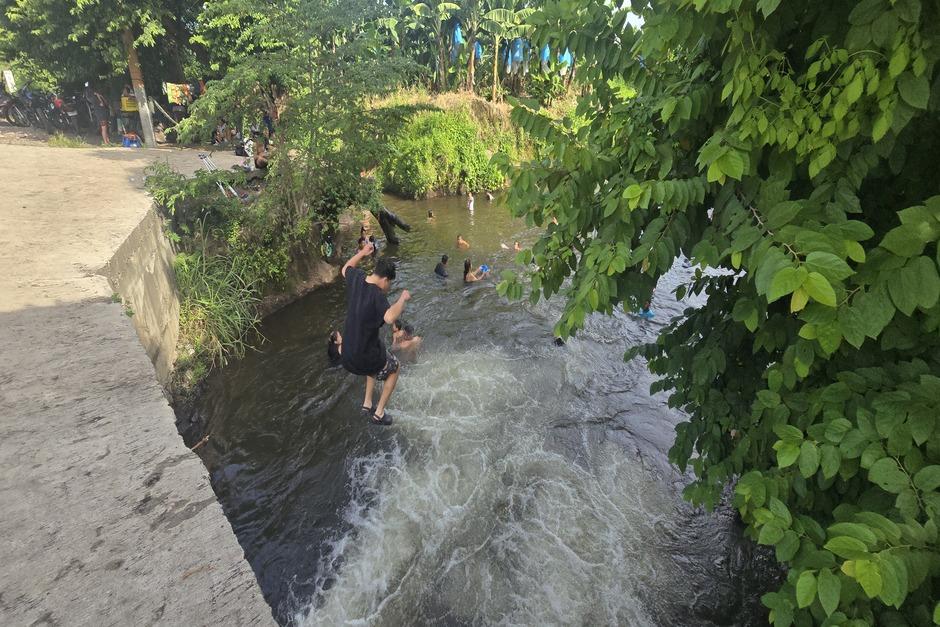 Del otro lado, al inicio de los terrenos de La Bananera, se forma una poza de gran tamaño, un poco más profunda, en donde los visitantes pueden nadar, jugar con pelotas, bucear, intentar atrapar algún pez o camarones y los más atrevidos se lanzan desde la orilla de la carretera hacia el agua.