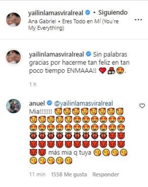 En el video Anuel comentó, "Mía, más mía que tuya", y la dominicana respondió con emojis de enamorada.