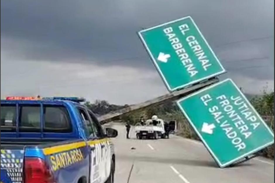 Un rótulo de grandes dimensiones cayó sobre un camión que circulaba en la carretera que conduce a El Salvador.