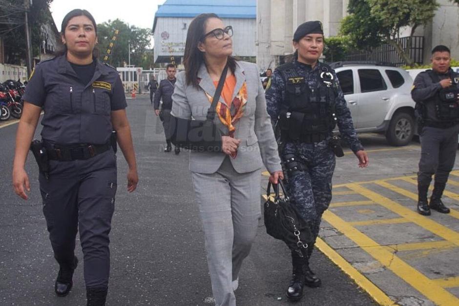 La exvicepresidenta Roxana Baldetti acudió a la Torre de Tribunales para la resolución sobre el levantamiento del embargo de sus cuentas bancarias. Sin embargo, el Juzgado de Extinción de Dominio rechazó su solicitud y concedió seis meses adicionales al Ministerio Público para investigar.