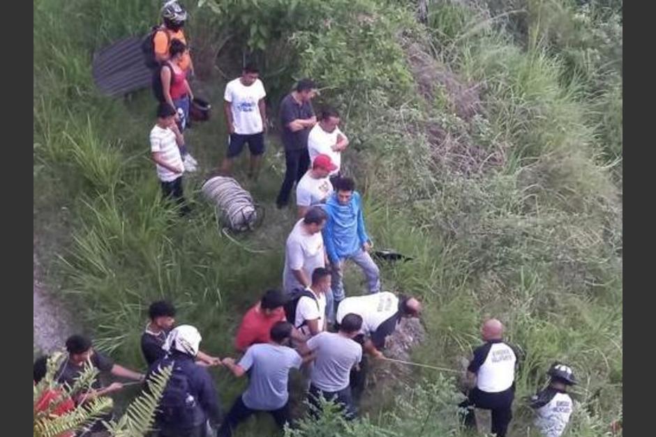 Los bomberos Voluntarios y Bomberos Municipales se encuentran realizando labores de rescate debido a que el accidente múltiple provocado por un trailer hizo que uno de los vehículos colisionados cayera al barranco.