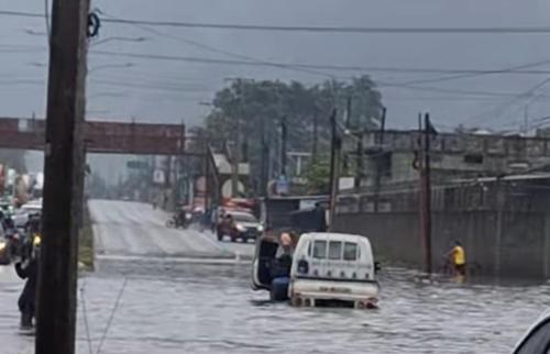 En una serie de fotografías compartidas en redes sociales se observa cómo el nivel del agua cubre gran parte de la carretera, impidiendo el avance de varios vehículos.