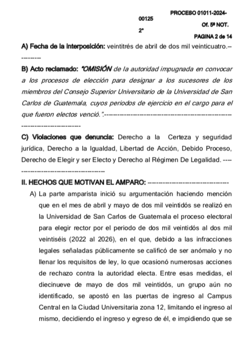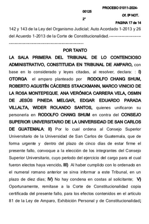 Recientemente, la Sala Primera del Tribunal de lo Contencioso Administrativo otorgó un amparo provisional y ordenó al Consejo Superior Universitario (CSU) que convoque a elecciones para renovar los cargos vencidos y que siguen ocupando desde 2022.