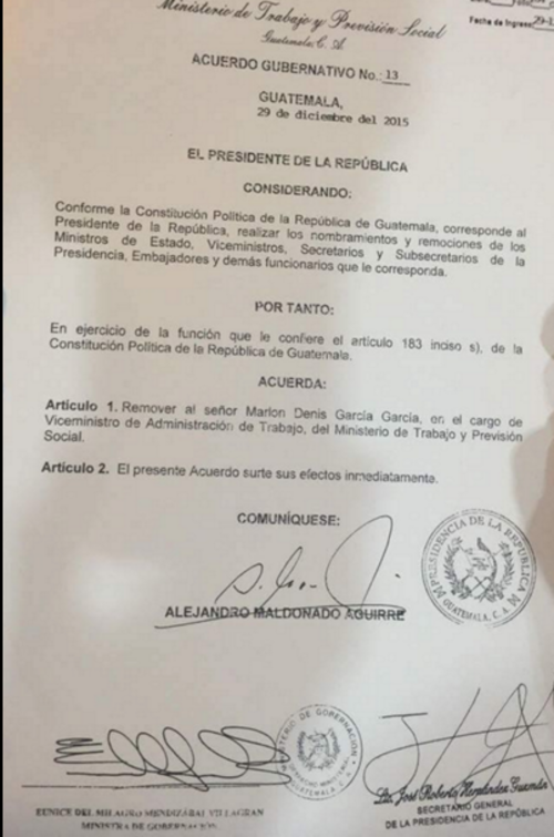 El presidente Maldonado no solo esperó un momento de distracción de la población para tomar su decisión, también esperó la ausencia del ministro de trabajo, Oswaldo Enríquez. El viceministro, Marlon Denis García, que quedó a cargo del despacho, se opuso a firmar la medida y por ello fue destituido.