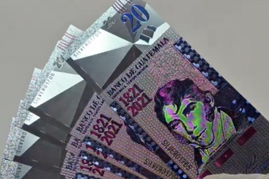 El diseño oficial del billete conmemorativo de Q20 fue lanzado en 2021 por el Banguat como parte de la celebración del Bicentenario de Independencia de Guatemala.
