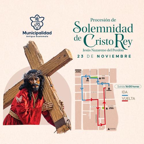 La primera es la conmemoración de Solemnidad de Cristo Rey con la procesión del Jesús Nazareno del Perdón, la cual sale a las 16:00 horas desde la iglesia San Francisco, para enfilarse por la ruta que pasa por los centros religiosos Santa Clara y San Pedro.
