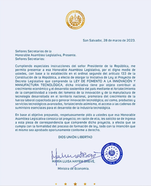 Esto en un intento de que el país sea un destino tecnológico más atractivo. Esta promoción de impuestos a las empresas fue promovida por el presidente Nayib Bukele, quien la presentó por primera vez a finales de marzo.