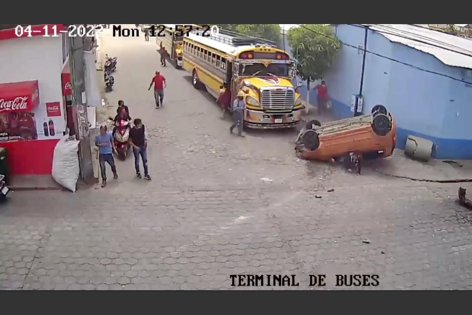 Un fuerte accidente se produjo en la terminal de buses de Zaragoza Chimaltenango.