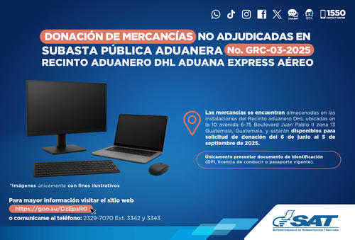 La Superintendencia de Administración Tributaria (SAT) a través de la Intendencia de Aduanas, anunció una subasta pública de varios aparatos tecnológicos.
