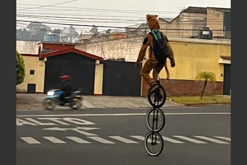 Además de llevar este disfraz, el joven se desplazaba en un monociclo de tres ruedas, con el cual también demostró su gran habilidad en el equilibrio.