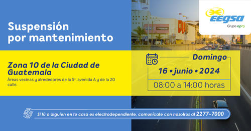 Cabe mencionar que si alguien es electrodependiente deben comunicarse con EEGSA al número de teléfono 2277-7000.
