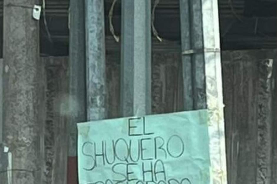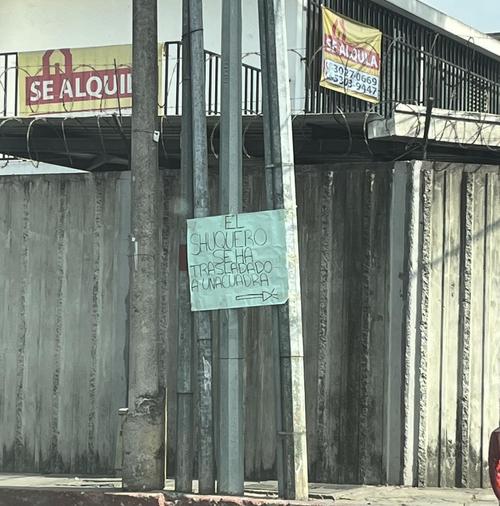 "El shuquero se ha trasladado a una cuadra", se lee. El mensaje va acompañado de una flecha señalando en dónde encontrar al vendedor.