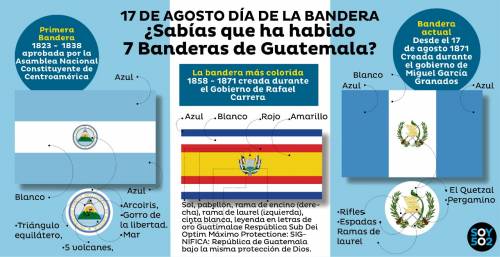El 17 de agosto se celebra el Día de la Bandera de Guatemala y aunque desde pequeño has visto ondear el azul y blanco, no siempre ha tenido los mismos colores ni la misma forma.