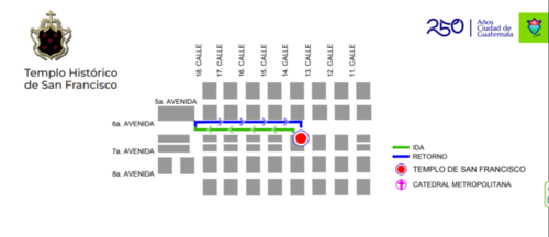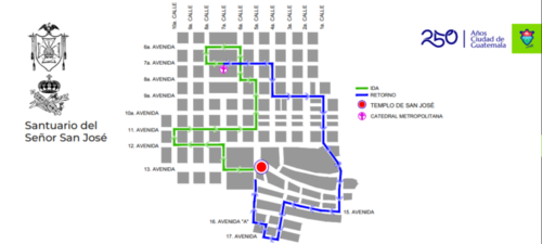 Santísima Virgen Dolorosa Franciscana, de 15:00 horas a 18:00. El cortejo partirá del histórico Templo de San Francisco, en la zona 1.