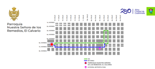 La salida será a las 16:00 horas y la entrada a las 22:00 horas. La procesión partirá de la Parroquia Nuestra Señora de los Remedios, conocida como El Calvario.