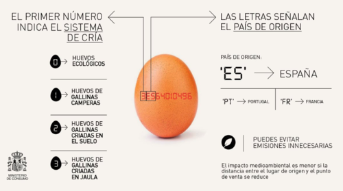 El resto del código indica la provincia o municipio donde se encuentra la granja de donde proceden los huevos. La fecha de consumo preferente, categoría y tamaño también se describen.
