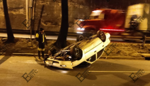 La mañana de este sábado 2 de diciembre se reporta un accidente vehicular en el Anillo Periférico. El conductor viajaba a exceso de velocidad y terminó volcando el vehículo, quedando éste en el carril contrario.