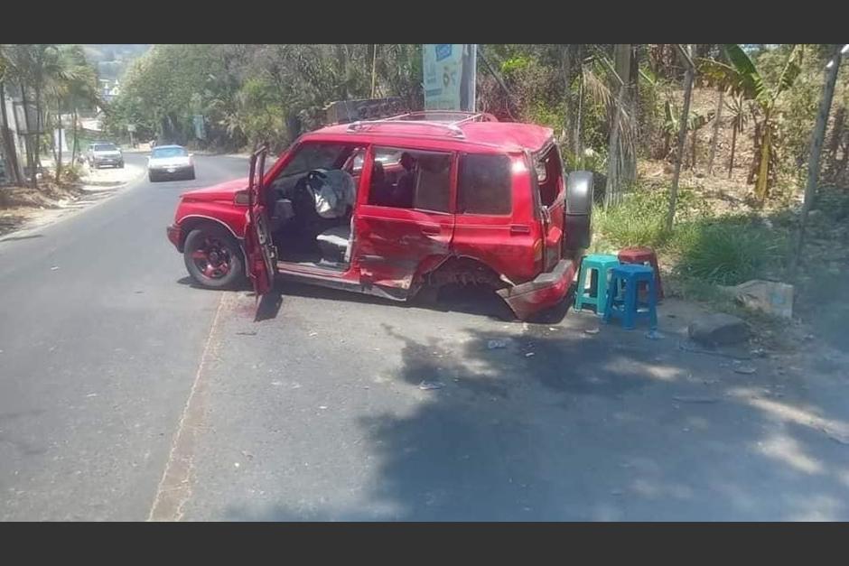 El impacto de ambos vehículos hizo que uno de los dos, el automóvil tipo camioneta se quedara sin tres llantas. Este fue impactado por un vehículo tipo Sedán.