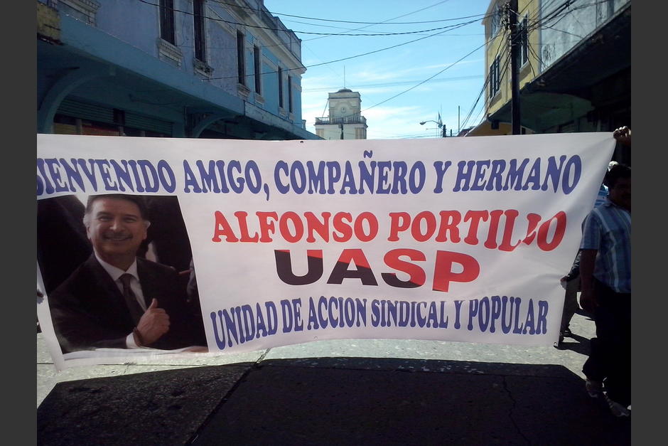 Organizaciones sindicales iniciaron actividades para darle la bienvenida al expresidente Alfonso Portillo. (Foto: Marcia Zavala/Soy502)