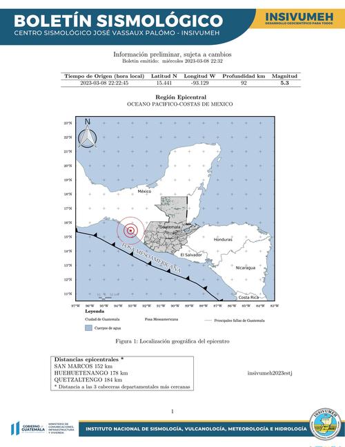 Además, los expertos confirmaron que en horas de la noche del miércoles 8 de marzo, un sismo de 5.3 grados fue sensible en Guatemala.