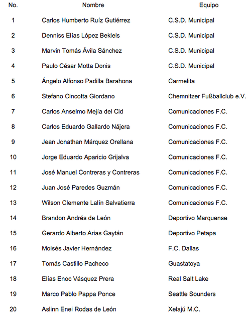El técnico de la Selección Nacional de Guatemala, Iván Franco Sopegno dio a conocer a sus 20 elegidos para los compromisos amistosos internacionales ante Canadá el 27 de marzo y El Salvador el 31.