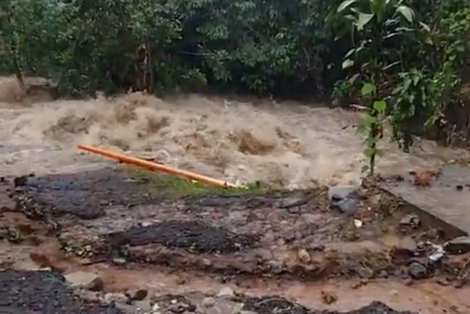 Desde un cerro fue captada la fuerza con que corre el agua, luego que los drenajes colapsaran al ser afectados por un derrumbe en la aldea Quetzalí, del municipio de San Pablo, San Marcos. pic.twitter.com/N9LoMwSM86