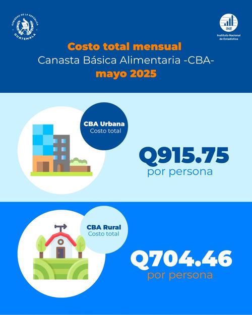 En el caso de la CBA para el área rural, el monto de mayo fue de Q704.46, mientras que en abril se reportó un valor de Q700.09.