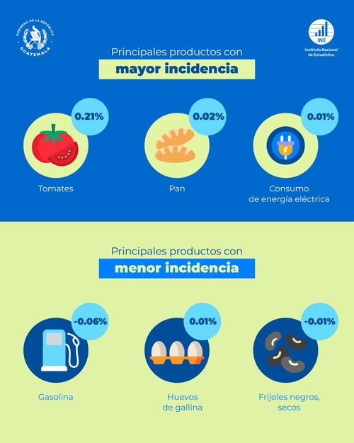 Hasta mayo 2025, la inflación mensual fue de 0.24 por ciento (0.21 más que la de 2024). Según el INE, dentro de los 436 productos incluidos en el IPC, 48 no registraron variación, 147 tienen una variación negativa, y 241 una variación positiva.