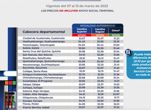 Cabe recordar que los precios para el servicio completo puede tener un aumento de hasta Q 1.10 por cada galón de combustible.