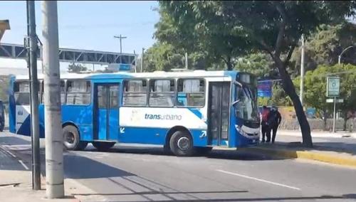 Con un bus del sistema Transurbano, los encapuchados bloquean el paso en el sector y complican la movilidad en ambas vías.