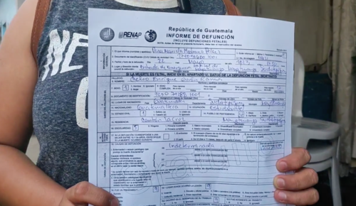 Una hermana del fallecido explicó en un video, que junto a los restos del adolescente les entregaron el acta de defunción del Registro Nacional de las Personas (Renap), en la cual se detalla que la causa de muerte es "indeterminada".