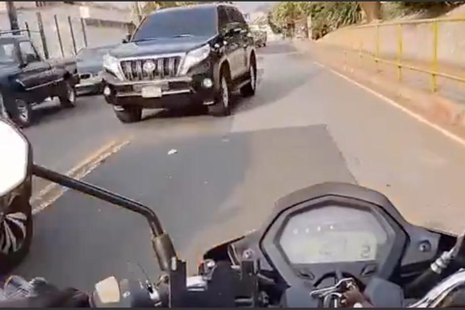 El motorista mostró que fueron dos conductores los imprudentes, sin embargo, el segundo automóvil que invadió el carril fue una camioneta tipo agrícola de lujo.