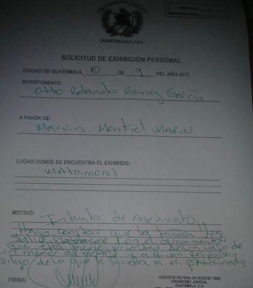 La defensa de Marvin Montiel, alias "El Taquero", solicitó una exhibición personal con el propósito de garantizar la integridad de su cliente.