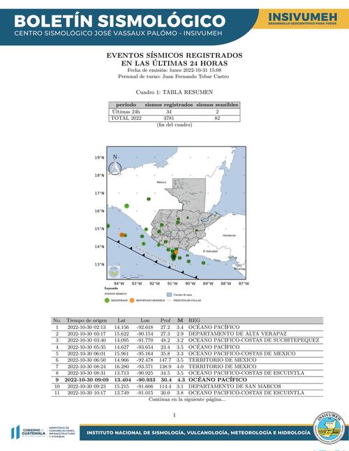 01 de noviembre 2022.#INSIVUMEH, Desarrollo geocientífico para todos. #SomosINSIVUMEH #Guatemala #TemblorGt pic.twitter.com/QvdhXeUqZz