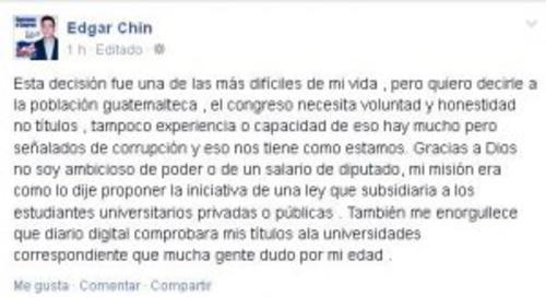 El nombre de Edgar Chin es bastante familiar para muchas personas en la actualidad debido a su actividad constante en redes sociales. Sin embargo, Chin ya había buscado una curul en el Congreso en el proceso electoral de 2015. Fue postulado por el Frente de Convergencia Nacional (FCN-Nación) cuando tenía 23 años.