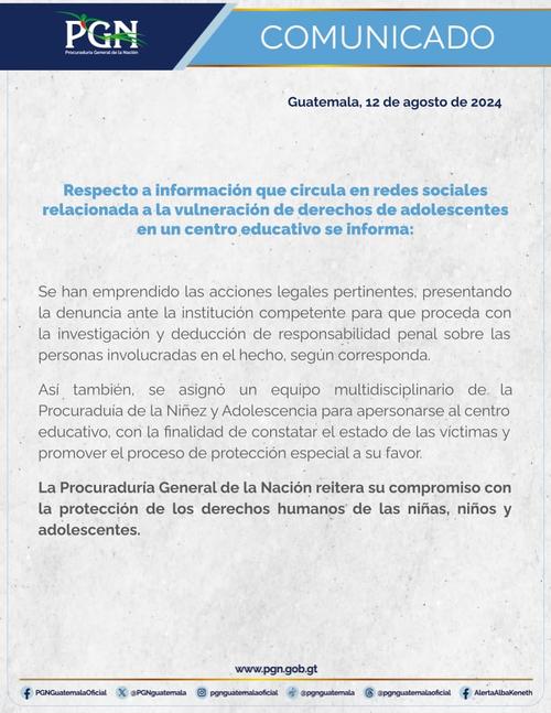 "La Procuraduría General de la Nación no tiene la atribución de asesorar a entidades privadas o establecimientos educativos, por lo que tampoco brinda respaldos a dichas entidades", dijo la PGN a Soy502.