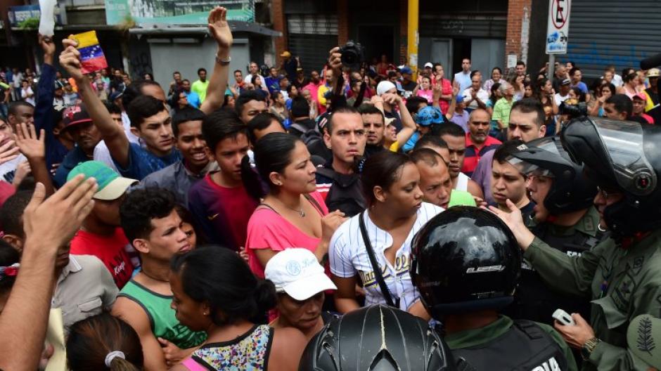 La escasez de comida en Caracas, Venezuela, despertó ira en las personas que hicieron largas colas, luego de que un grupo de militares se llevara los alimentos que ellos esperaron durante horas.