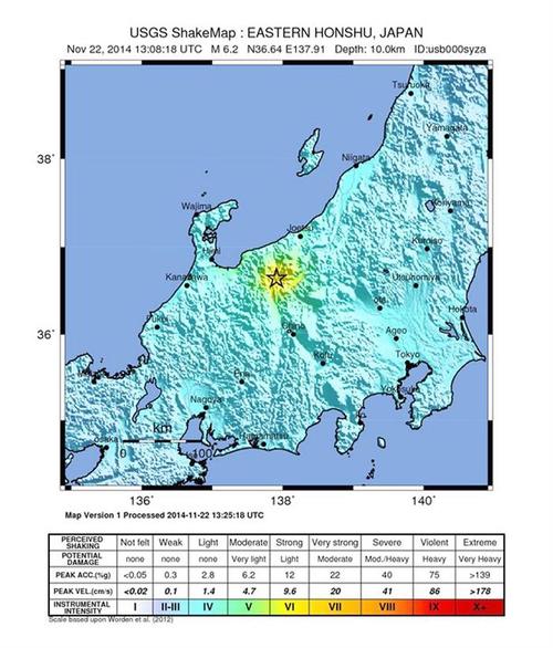 El terremoto alcanzó una intensidad de 6,8 grados en la ciudad de Nagano, capital de la prefectura, y en las localidades de Otari y Ogawa.