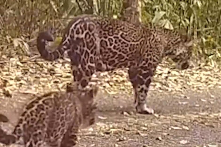 Una de las escenas captadas y difundidas más recientemente corresponde a una jaguar y sus crías. En la grabación, que fue compartida por un comunicador local, se aprecia cómo dos cachorros pasean, bajo la supervisión de su mamá.
