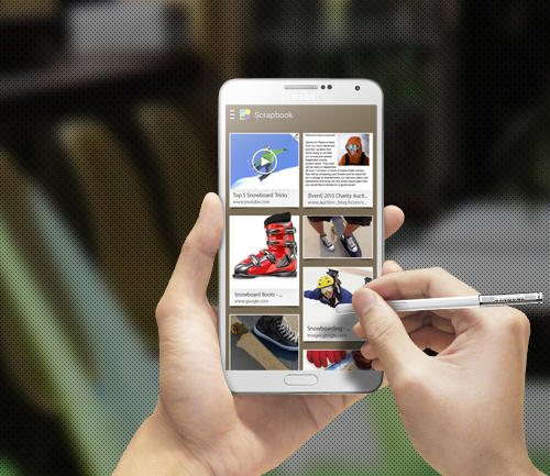 Con solo desplazarlo suavemente por la pantalla de la tableta, se accede a 5 funciones clave, empezando por la herramienta de Scrapbook, que sirve para organizar tus intereses y detalles de vida por categorías.
