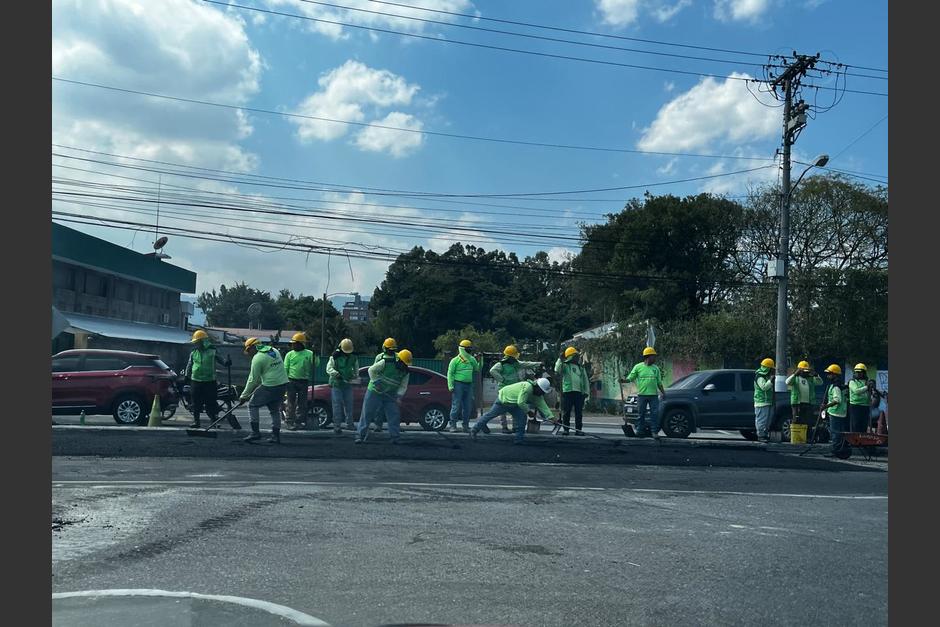 La Municipalidad de la Ciudad de Guatemala se encuentra realizando trabajos de recapeo en el ingreso a la Universidad de San Carlos (Usac), en la 11 avenida de la zona 12 capitalina, este 5 de febrero.