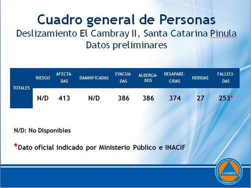 Respecto a la confusión que se ha generado en torno a las cifras, Maldonado explicó que se trata de un número difícil de establecer pero que, gracias a que la Empresa Eléctrica de Guatemala les proporcionó un listado de los contadores registrados en el área, se determinó, tras restar los que no quedaron soterrados, que habría 73 viviendas bajo tierra.
