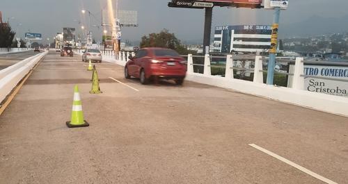 Según la Policía Municipal de Tránsito de Mixco (Emixtra), la Unidad Ejecutora de Conservación Vial (Covial) realiza trabajos en las juntas dilatadoras sobre dicho puente.