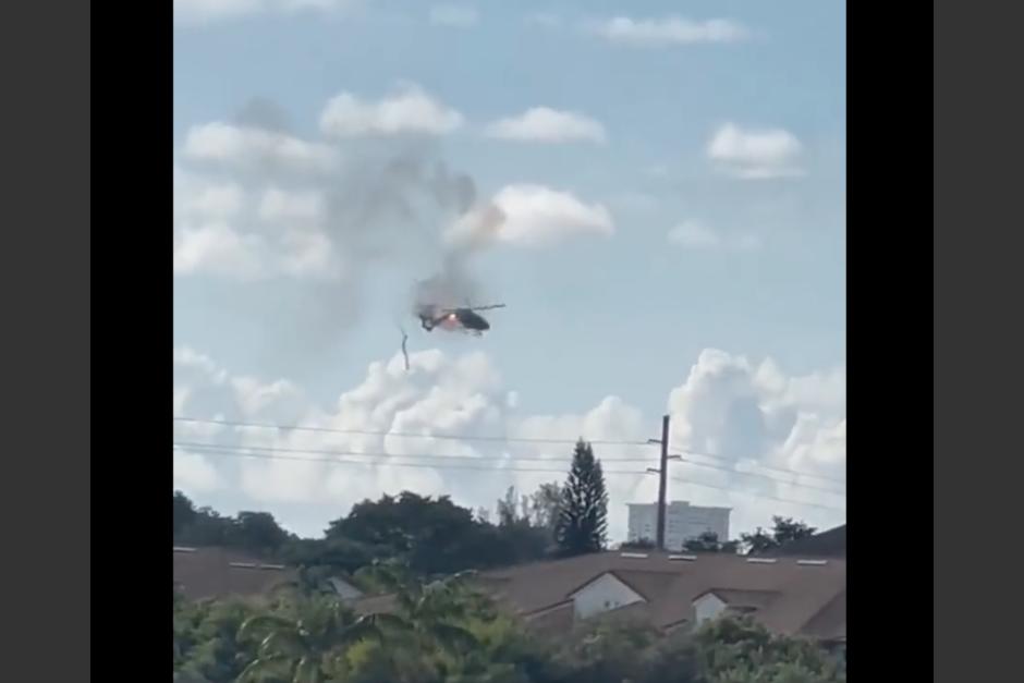 El siniestro quedó registrado a través de cámaras y se muestra humo proveniente del helicóptero antes de que comenzara a dar vueltas en círculos y luego se estrellara contra el suelo.