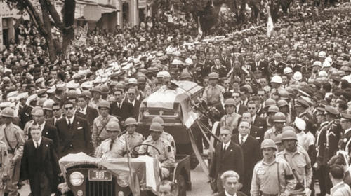 Al final del corredor dos soldados firmes le abrieron paso al presidente; él los saludó con respeto y siguió su camino, pero apenas unos pasos después una bala entró por su espalda, luego otra más. Otilia, su esposa, se lanzó al suelo y trató de reanimar a su marido que estaba tirado en un charco de sangre.