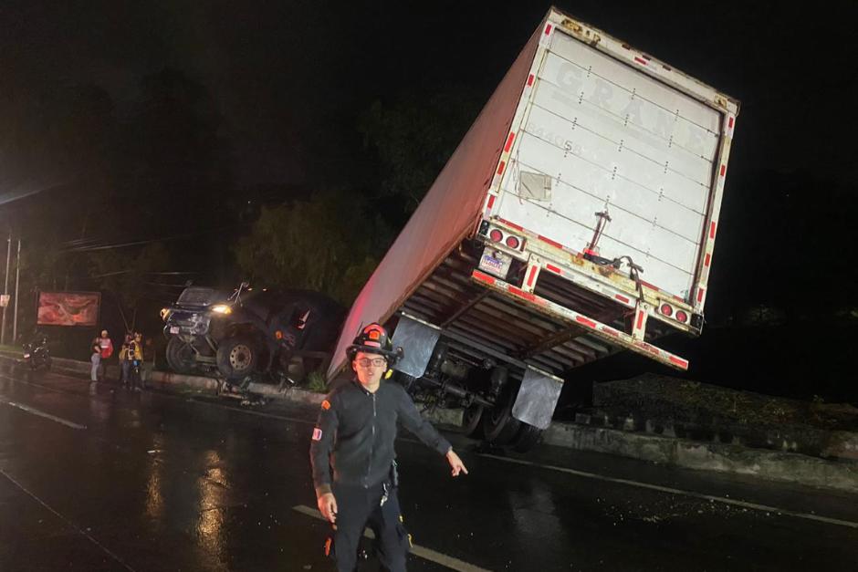 Por su parte, Dalia Santos, portavoz de la Policía Municipal de Tránsito (PMT) de Villa Nueva, informó que el tráiler colisionó con los separadores viales y que terminó encunetado en dirección al sur.