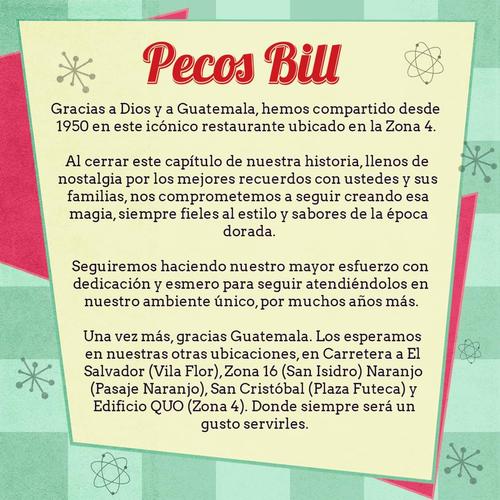 Desde los primeros días de 2024, en redes sociales circuló la noticia sobre el traslado del restaurante Pecos Bill, ubicado en la zona 4 capitalina y recordado por su temática que desde su apertura en 1950 conservó.